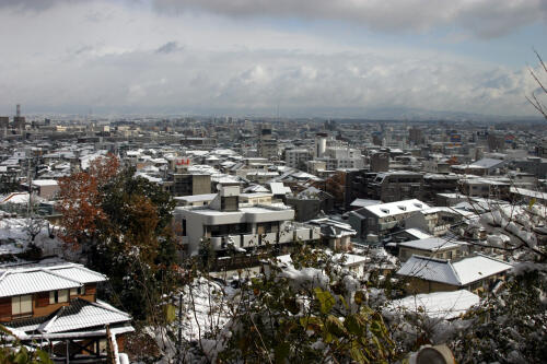 雪は小やみかほのかの青空